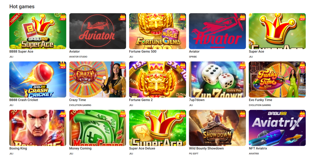 Once you have successfully completed the Babu88 bet login, you will no longer have any obstacles to diving into the crazy selection of games. Each of them is worth your attention and complies with the principles of responsible gambling. You can enjoy live betting, slots, virtual fishing, and many others. Here are the most popular categories on the platform with examples of well-known games from leading providers.